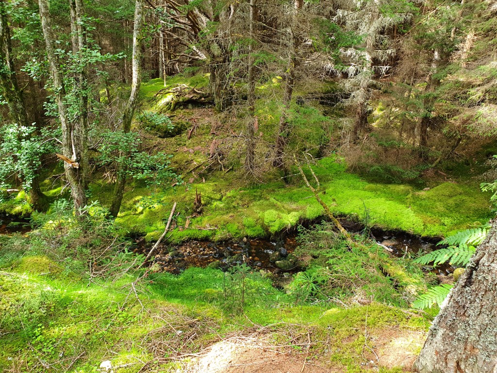 The walk started gently, through thick forest, which provide welcome relief from the blazing sun (a rare sight in Scotland indeed!). As we left the cover of the trees, we were welcomed by the sight of Meall a’ Bhuachaille stretching out before us, and the mountain range to our right.