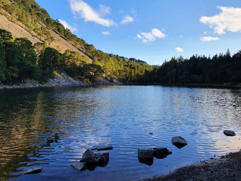 Eventually, we entered into the forest again, where we walked, for a hour or two, flanked by ancient trees. We did pass by one of the nicest sights in the Cairngorms – An Lochan Uaine (the Green Lake). At this point we also realised that we had walked the route backwards, as this was meant to be something we see at the very start.
