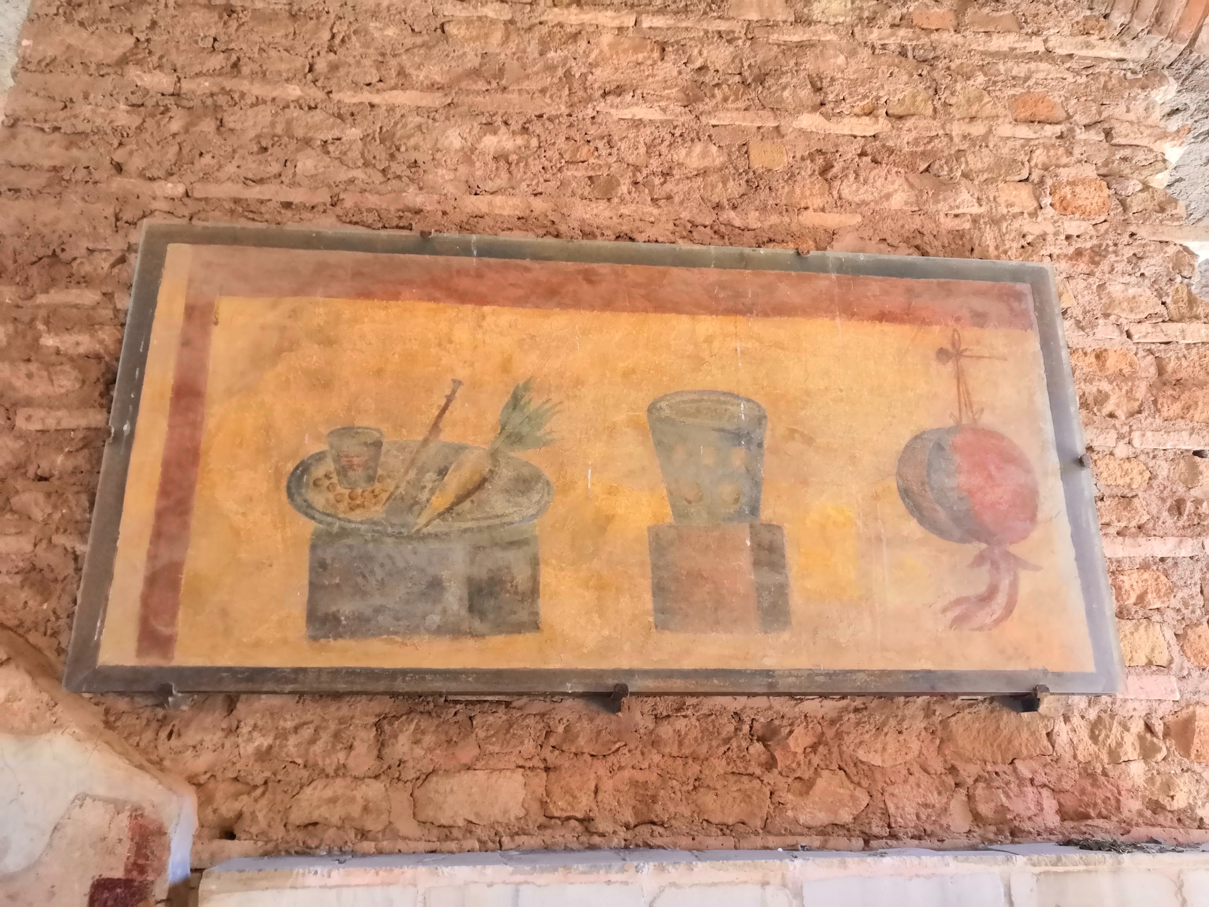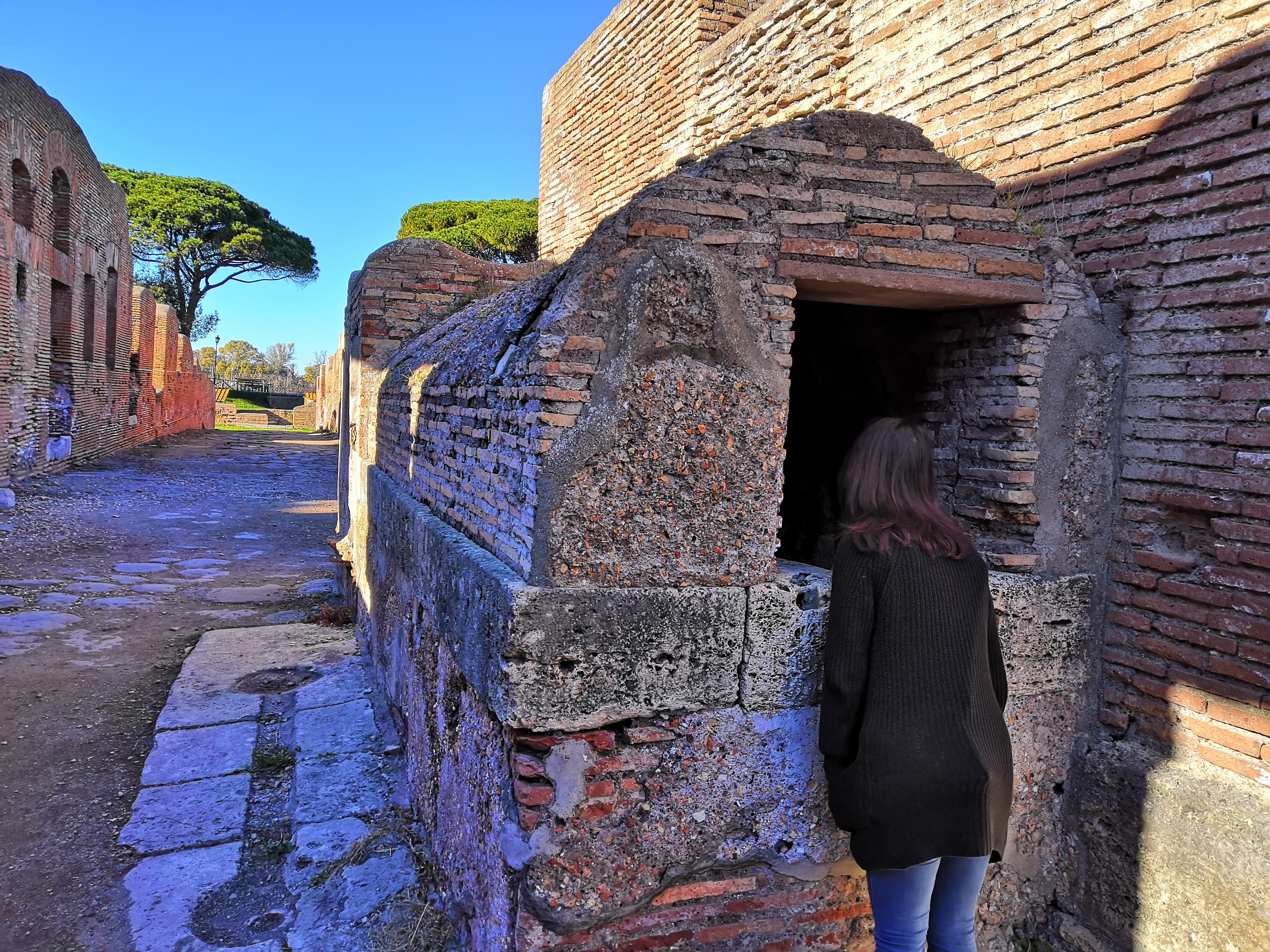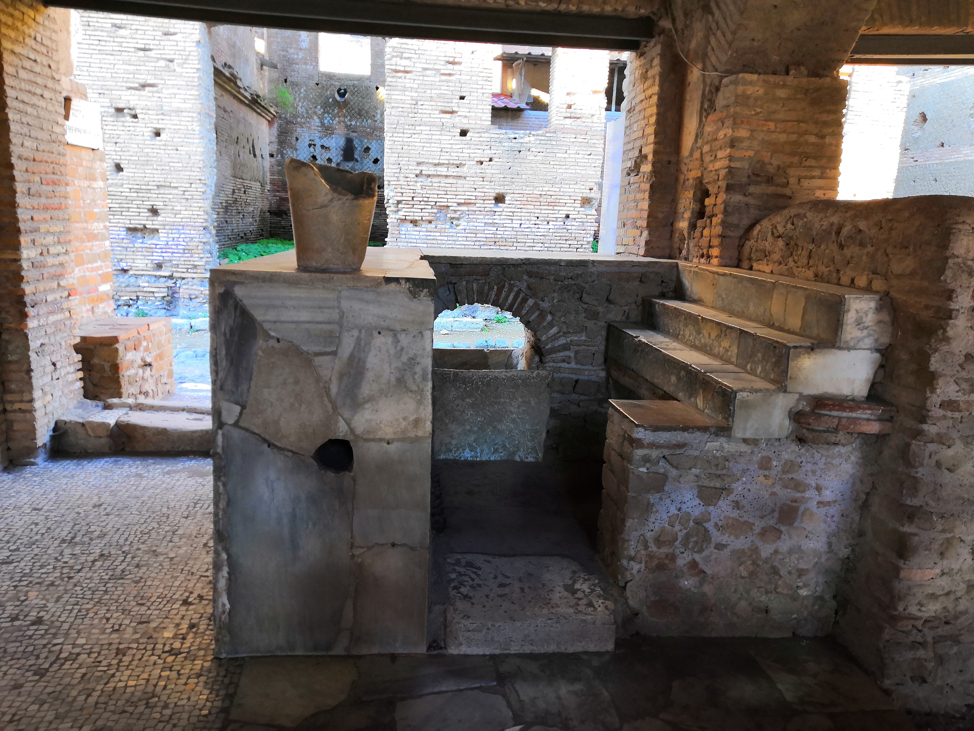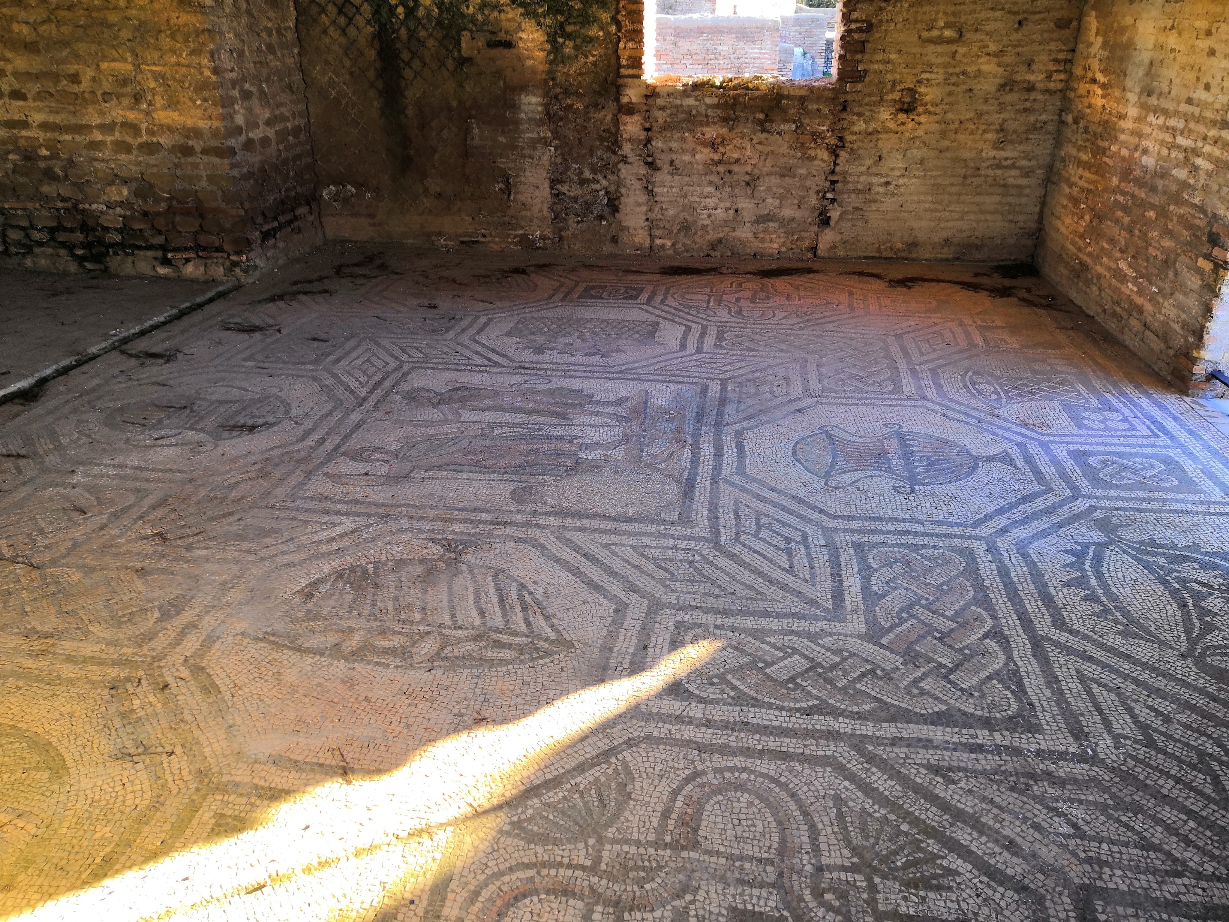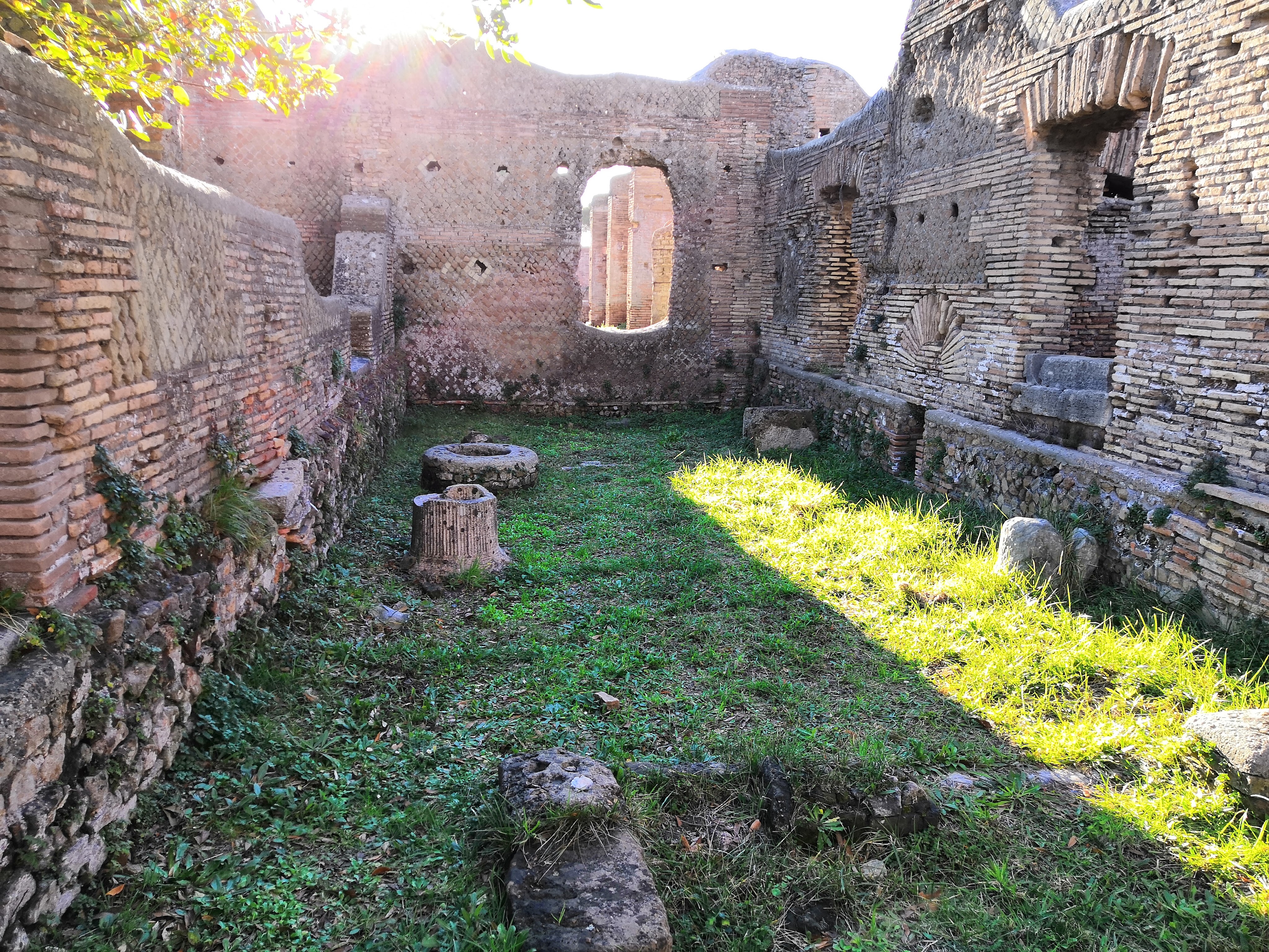 Ostia Antica begins quite lacklustre, with only the foundations of buildings remaining. The ruins form a sort of ‘city-plan’ where you can see where the buildings and roads once stood, but very little of it actually remains. However, there are numerous basements you can enter, which is one feature that distinguishes this site from Pompeii. In some of these cellars, the remains of old storage facilities can be found, such as amphorae which would have been used to store wine or other goods.