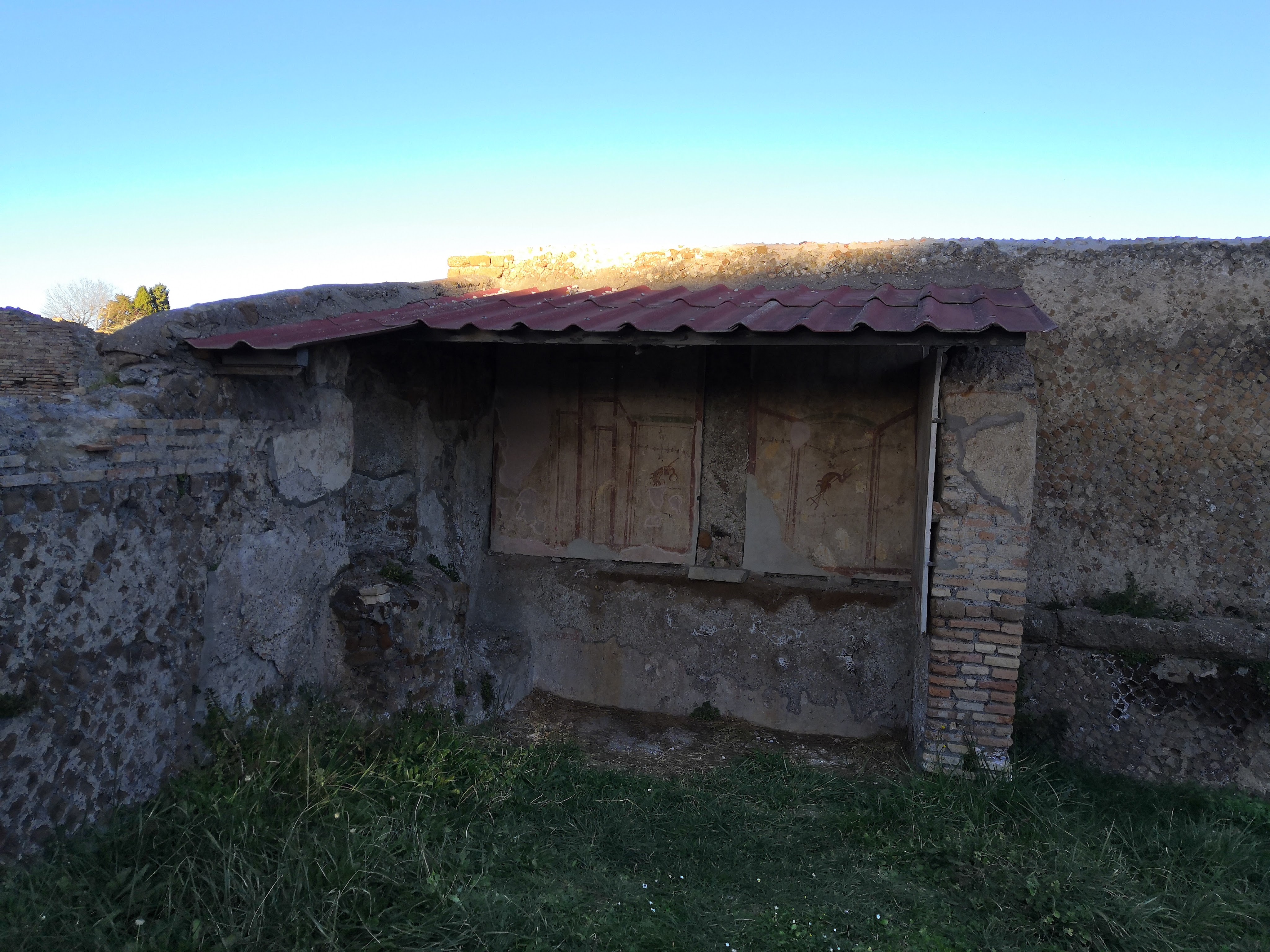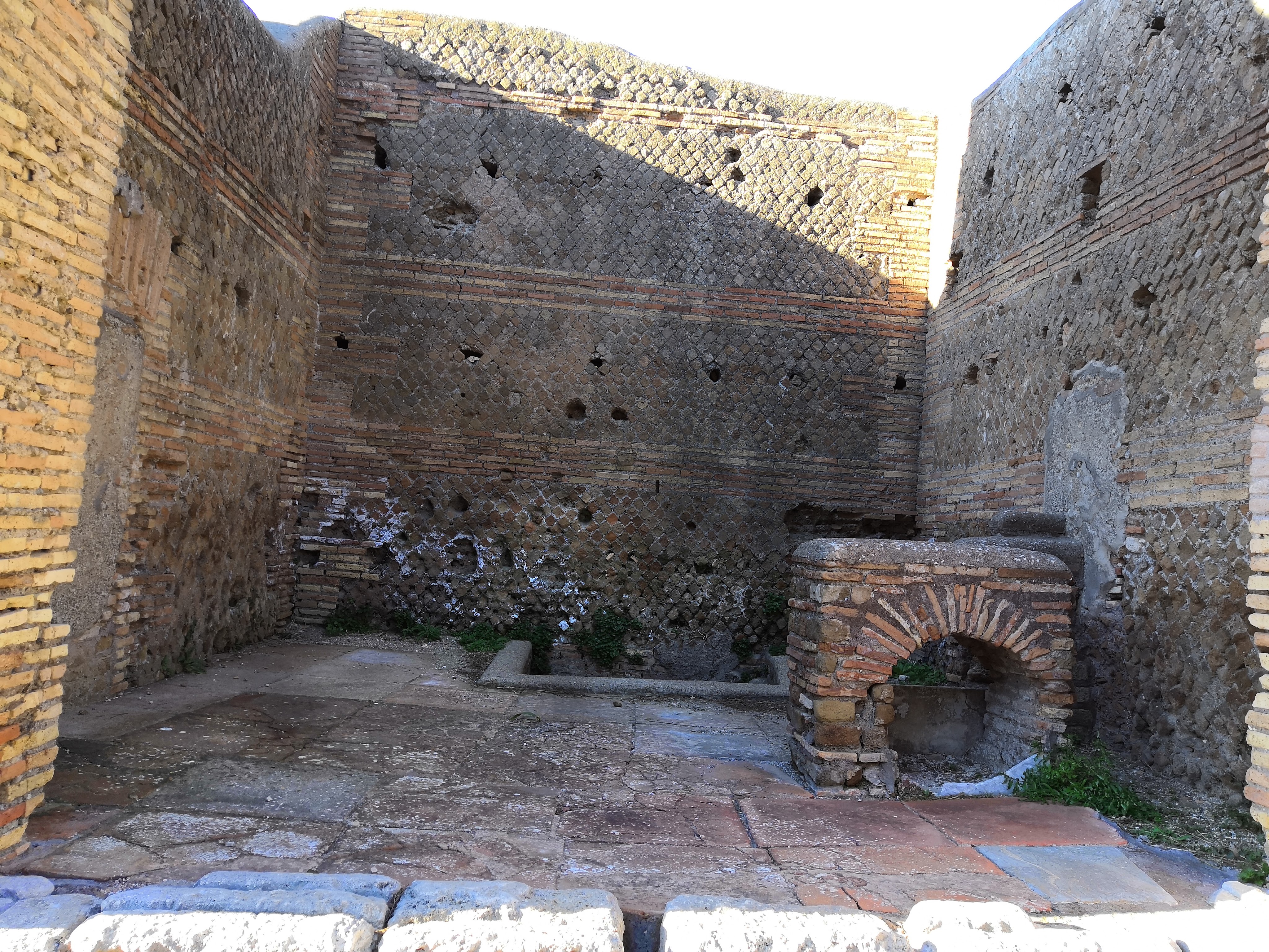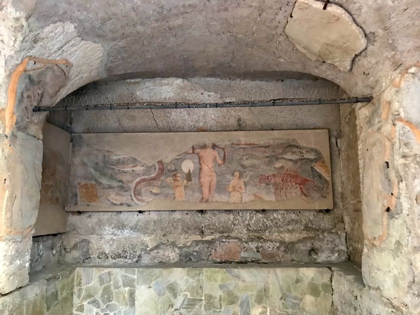 The rich of Ostia Antica made their home in this part of town, and it shows in the size and decoration of the buildings. Mosaics cover the floors, and ornate paintings can be found on the walls. Even the architecture itself showcases the wealth of the former residents of the town.