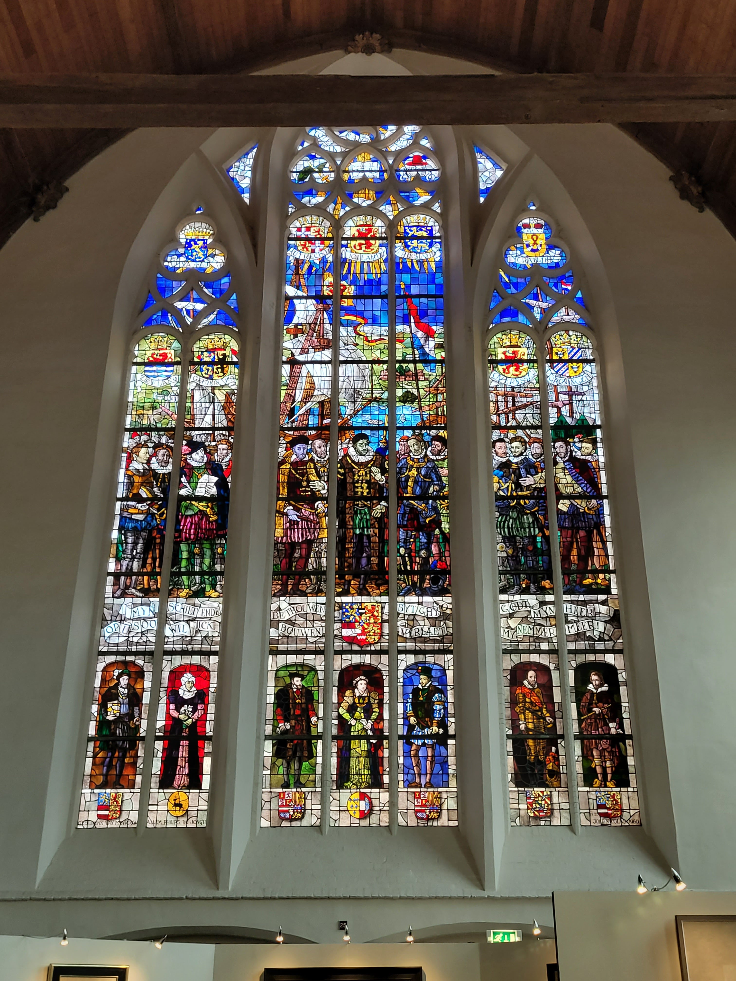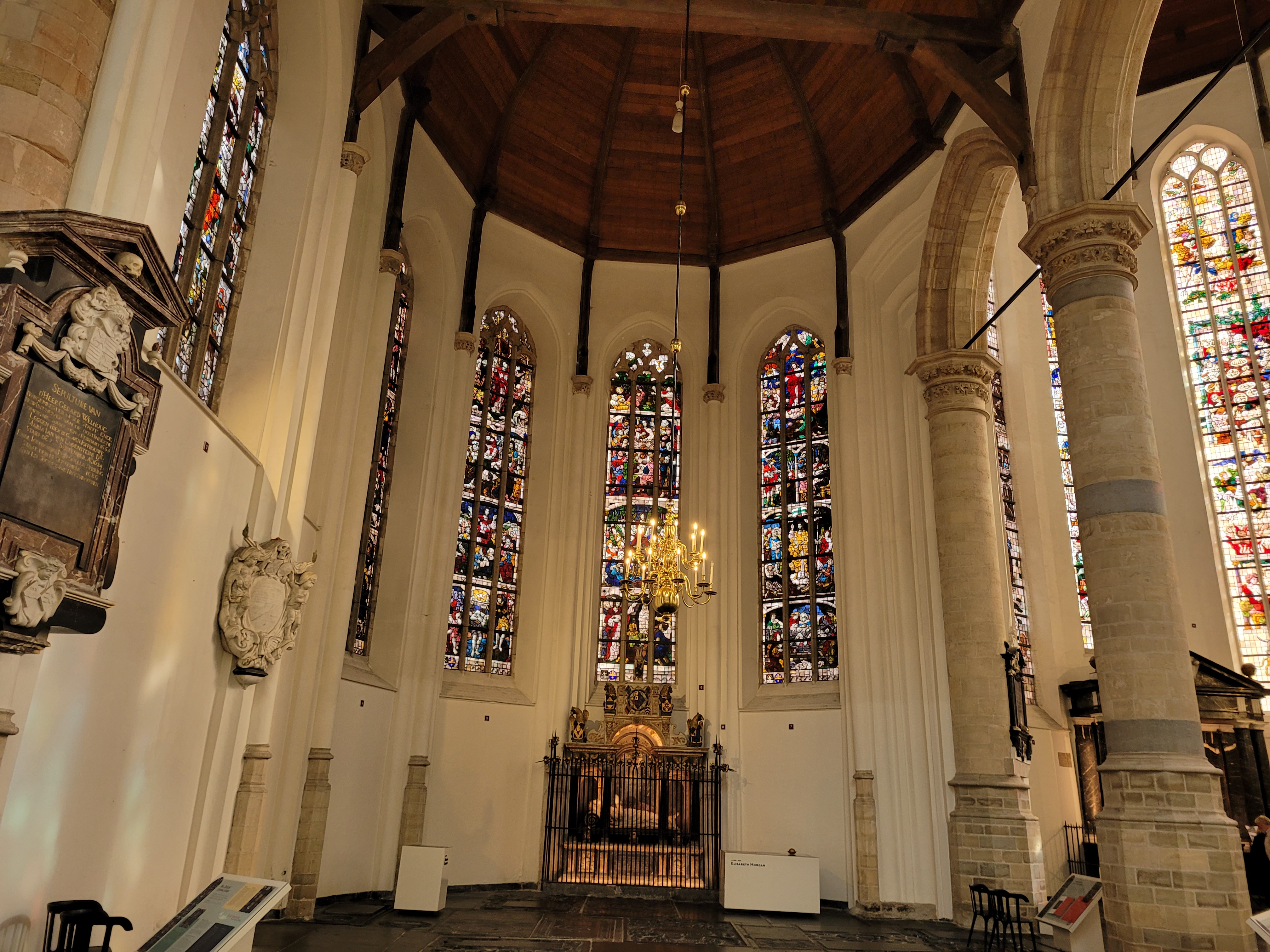 These are the principal churches of Delft. Unfortunately, you have to pay a small entry fee, but you can get a ticket that allows for entry into both churches. We were pleasantly surprised to find an interesting art exhibition in the Old Church, whereas the New Church has an imposing interior.